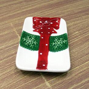 CORES: ;Branco, Vermelho e Verde;MATERIAL: ;Cerâmica;MEDIDAS: ;Altura 2cm X largura 13cm X Comnto 9cm;Uso Para Decoração Natalina;Conteúdo da Embalagem;