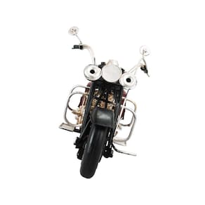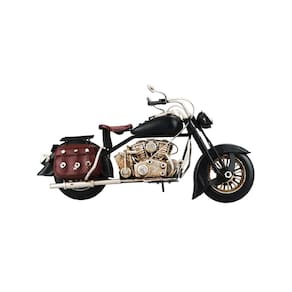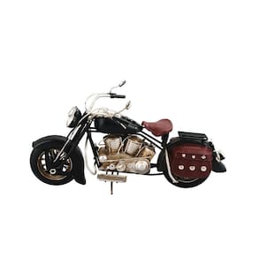 Enfeite decorativo em forma de uma motocicleta preta com 15 x 27 x 10 cm de dimensão, detalhes e cores muito realista. Material: metal; Atenção: este produto tem apenas função decorativa, não é um brinquedo e nem uma motocicleta de verdade! Marca: Não Informado