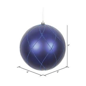 Vickerman Ornamento de bola espiral fosco e glitter azul cobalto de 15,24 cm, 3 por caixa