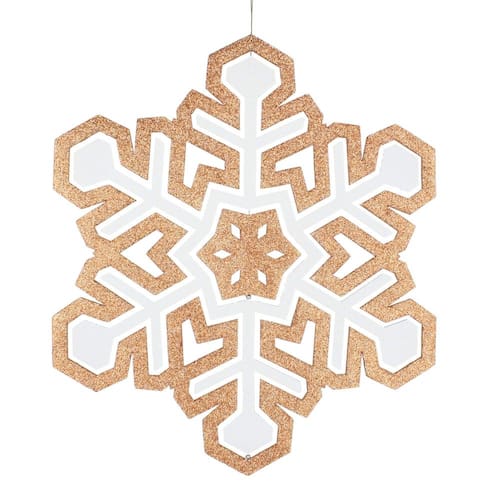 Enfeite de Natal Vickerman 25" em ouro rosa e branco Foam Glitter Snowflake — com detalhes em glitter — Design tridimensional