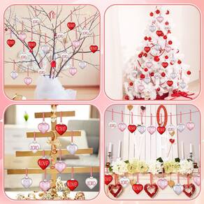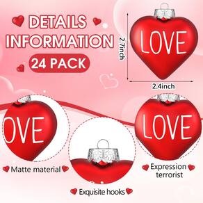 Características: Presente ideal: Você não apenas pode decorar sua casa com estas decorações de árvore festival, mas também pode criar um festival romântico para sua amada, ela vai adorar seus presentes. Fácil de combinar: Estes enfeites decorativos de plástico em forma de coração são bonitos e se encaixam em qualquer estilo de decoração, você pode combiná-los com outras decorações de acordo com seus hobbies. Especificações: Material: plástico Cor: como mostrado na imagem. Tamanho: aprox. 6 cm de diâmetro. A embalagem inclui: 24 enfeites em formato de coração para o Dia dos Namorados Observações: Medição manual, considere pequenos erros no tamanho. A cor pode existir uma ligeira diferença devido a diferentes ecrãs. - O pacote inclui: você receberá 24 peças de enfeites pendurados em forma de coração do Dia dos Namorados e equipados com cordas, rica quantidade para você usar na vida diária, que são adequados para decorações de festivais, eles vão dar a você e sua namorada um momento doce - Fácil de usar: as decorações do festival são muito fáceis de usar porque têm um pequeno orifício na parte superior, enquanto equipadas com corda você pode pendurar em galhos, camisas de árvores, janelas, maçanetas ou outros lugares que você gosta, adicione uma atmosfera mais festiva à decoração da sua casa - Ampla aplicação: ornamentos em forma de coração para árvore não só podem ser pendurados em casa, na árvore, mas também adequados para decorações do Dia dos Namorados, decorações de Natal, decorações do Dia da Independência, decorações do Dia de Ação de Graças, decorações de ano novo ou outros lugares - Material de qualidade: estas decorações suspensas são feitas de material plástico, são leves e espaçam um espaço pequeno, e você pode pendurá-las por muito tempo, você pode obter o efeito decorativo que quiser - Tamanho adequado: cada decoração suspensa em forma de coração do Dia dos Namorados é projetada com tamanho adequado, aprox. 6 cm de diâmetro, o que é fácil de decorar sua festa e mostrar a sensação doce e romântica para seu amante, namorada ou esposa