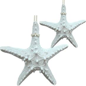 Enfeites Estrelas Mar Branca Casa Praia Oceano Mar Kit 2pçs -