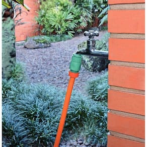 Simplifique suas tarefas com o engate rápido com aquastop Tramontina em plástico para mangueira 1/2 polegada. Uma peça que possibilita a ligação entre a mangueira, torneira e acessórios de forma muito mais prática, permitindo trocar os acessórios mesmo com a torneira aberta. Um item indispensável para seu jardim! Orientações - Produto fabricado com matéria-prima de alta qualidade proporcionando uma irrigação precisa e confiável.- Utilizado na saída de água da mangueira.- Conexão por sistema de fixação rosqueado à mangueira de 1/2".- Com sistema Aquastop, que bloqueia a saída de água ao remover o acessório.- Conexão tipo click aos acessórios de irrigação, através de 2 garras. Características Gerais EAN13 7891117030782 DUN14 17891117030789 NCM 3917.40.90 Peso Líquido 0,0210 kg. Peso Bruto 0,0220 kg. Metragem 0,000064 m³. Dimensões Embalagem (Compr. X Larg. X Alt.) 35x 35x 52 mm. Dimensões Produto (Compr. X Larg. X Alt.) 36x 36x 53 mm. Cor 1 009900 Hexa Observações - O engate faz a ligação do sistema com a rede de água e com os pontos de saída.- O engate rosqueado é usado em mangueiras de 1/2".- Água: pode faltar. Não desperdice.- Para descarte dos produtos e embalagens siga as orientações de reciclagem vigentes.