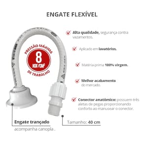 O Engate Trançado Flexível Durín é o item essencial para as instalações de lavatórios e bacias sanitárias, garantindo uma conexão segura e de alta performance. Fabricado com matéria-prima 100% virgem, ele suporta uma pressão de trabalho de até 8 kgf/cm² e oferece o melhor acabamento do mercado.