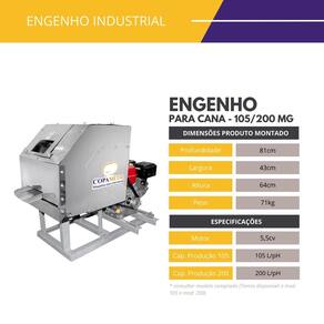 Engenho de Cana FC200 Rolo Inox com Motor Gasolina 5,5cv FC2 O modelo FC2 ECI-200-MG é ideal para locais onde não há energia elétrica disponível. Com motor a gasolina de 5,5 CV, é perfeito para feiras livres, zonas rurais e ambientes externos com alta demanda.