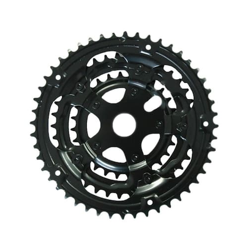 Coroa de bom custo benefícioEsta engrenagem tripla é produzida em aço carbono resistente e durável e possui configuração de 28x38x48 dentes, o que a torna uma opção de bom custo benefício para bicicletas de 18 ou 21 marchas.