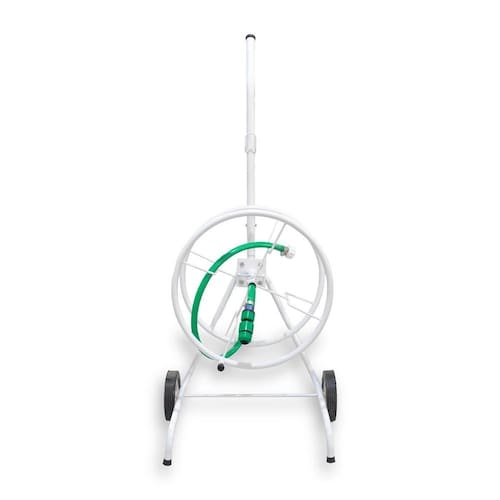 Enrolador carrinho metal para mangueira até 50mt jardim Material ferro Cor branco Com rodas sim Comprimento máximo de mangueira suportado 50 É automático não Acessórios incluídos sim do fabricante 3 meses Modelo carrinho enrolador de mangueira Uso indicado conservação e organização de mangueiras Marca: Não Informado