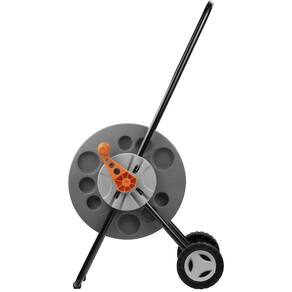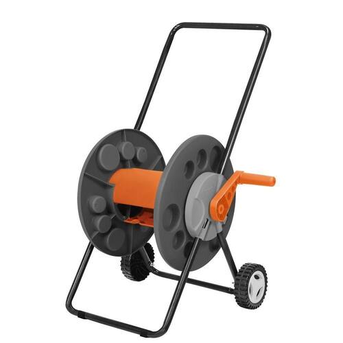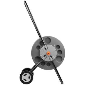 - Capacidade de armazenamento de até 55 metros de mangueira 1/2. Este é apenas um valor de referência, considerando uma mangueira de 1/2. O valor pode variar para mais ou para menos, dependendo do modelo e do diâmetro da mangueira.
