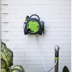 O enrolador de mangueira Garden e a solucao ideal para quem busca praticidade e organizacao na hora de cuidar do jardim. Com dimensoes compactas de 31 cm de altura, 32 cm de largura e capacidade para armazenar mangueiras de 5 a 10 metros, ele se adapta facilmente a qualquer espaco. A combinacao de cores verde e cinza confere um visual moderno e discreto, que se integra perfeitamente ao ambiente externo. Fabricado com materiais de alta qualidade, como borracha, metal e plastico, este enrolador e resistente e duravel, garantindo um uso prolongado e eficiente. Alem de suas caracteristicas esteticas, o enrolador de mangueira Garden oferece funcionalidades que facilitam o dia a dia. Ele vem acompanhado de uma mangueira de 10 metros em polipropileno, material plastico que assegura flexibilidade e resistencia. O sistema de recolha manual permite um uso simples e pratico, enquanto o jato regulavel oferece versatilidade para diferentes tipos de irrigacao. A instalacao na parede otimiza o espaco e mantem o jardim sempre organizado, evitando emaranhados e prolongando a vida util da mangueira. Este produto e ideal para quem deseja uma solucao completa e funcional para a manutencao de areas externas. Com garantia do fabricante de 24 meses, o enrolador de mangueira Garden proporciona tranquilidade e seguranca na compra. A embalagem em caixa facilita o transporte e armazenamento, enquanto os acessorios inclusos garantem uma experiencia de uso completa e satisfatoria. Seja para regar plantas, limpar areas externas ou realizar outras atividades no jardim, este enrolador e a escolha perfeita para quem valoriza eficiencia e praticidade. Produto: Enrolador de Mangueira | Altura: 31,00 cm | Largura: 32,00 cm | Comprimento: 10,00 m | Espessura: 10,00 mm | Cor: Verde e Cinza | Tonalidade: Cinza e Verde | Marca: Garden | Produto Acompanha Embalagem: Sim | Tipo de Embalagem: Caixa | Garantia do Fabricante: 24 mes(es) | Acompanha Mangueira: Sim | Tipo de Material da Mangueira: Polipropileno | Material da Mangueira: Plastico | Comprimento da Mangueira: 10,00 m | Capacidade de Armazenamento: 5 a 10 m | Possui Acessorios Inclusos: Sim | Tipo de Enrolador: Parede | Possui Jato Regulavel: Sim | Tipo de Recolha da Mangueira: Manual | Material: Borracha, Metal e Plastico