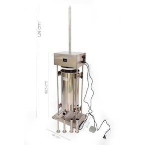 - Capacidade: até 20 kg de carne, ideal para produção em maior escala; - Estrutura em inox de alta qualidade: corpo em aço inox 430 e tacho em aço inox 304, garantindo resistência, durabilidade e fácil higienização; - Motor potente: 280W 220V / 60Hz, oferecendo alto desempenho e eficiência no processamento; - Praticidade no uso: acionamento por pedal e variador de velocidade para controle perfeito da descida do pistão; - Base reforçada: design retangular que assegura maior estabilidade durante o funcionamento; - Acessórios inclusos: 4 funis em inox de alta durabilidade, nos diâmetros 15mm, 20mm, 25mm e 40mm, todos com 190mm de comprimento.