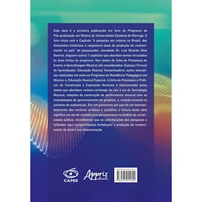 Esta obra é a primeira publicação em livro do Programa de Pós-graduação em Música da Universidade Estadual de Maringá. O livro inicia com o Capítulo “A pesquisa em música no Brasil: das dimensões históricas à conjuntura atual da produção do conhecimento no país” do pesquisador convidado Dr. Luis Ricardo Silva Queiroz. Seguem outros 7 capítulos que abordam temas vinculados às duas linhas do programa. Nos textos da linha de Processos de Ensino e Aprendizagem Musical são considerados: Espaços Virtuais de Aprendizado; Educação Musical Humanizadora; ações educativas realizadas em meio ao Programa de Residência Pedagógica em Música; e, Educação Musical Especial. A linha de Processos e Práticas de Construção e Expressão Musicais é representada pelos textos que abordam: música sertaneja de raiz à luz da Semiologia Musical; relações da construção da performance musical com as metodologias de gerenciamento de projetos; e, criação musical no contexto do audiovisual. Em um panorama em que há um desmantelamento dos cenários artístico e científico, a feitura desta obra significa um ato de resistência e perseverança no âmbito da universidade pública. Acreditamos que as contribuições das pesquisas e reflexões aqui compartilhadas fortaleçam a produção de conhecimento da área e sua disseminação.