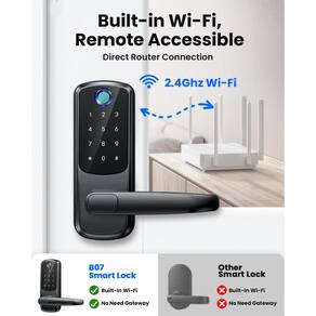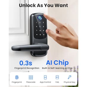 A fechadura de porta de entrada sem chave SohoTeco com alça combina tecnologia de ponta e conveniência para suas necessidades de segurança doméstica. Com uma fechadura WiFi integrada e reconhecimento de impressão digital inteligente, esta fechadura oferece acesso perfeito por meio de vários métodos de desbloqueio, incluindo impressão digital, entrada de senha, controle de aplicativo, acesso ao fob e uso tradicional de chave. Perfeito para aqueles que valorizam a versatilidade, garante acesso rápido e seguro à sua casa, esteja você em casa ou em movimento. Com conectividade Wi-Fi e integração com o aplicativo Smart Life, esta fechadura inteligente permite que você gerencie o status da fechadura, receba notificações em tempo real e desbloqueie remotamente sua porta. Você também pode configurar senhas temporárias para convidados e monitorar o desempenho do bloqueio diretamente do seu dispositivo móvel. Além disso, possui uma função de chamada de campainha que envia notificações instantâneas para o seu telefone quando ativado, permitindo que você desbloqueie a porta remotamente. Observe que esta função é limitada a responder a chamadas de campainha. Construído para durar, a trava oferece até 12 meses de vida útil da bateria usando 4 pilhas AA (não incluídas), com um indicador de baixa potência para monitorar os níveis de bateria. Sua instalação é simples e rápida, levando menos de 15 minutos com instruções passo a passo, tornando-a uma excelente opção para entusiastas de bricolage. Recursos avançados de segurança incluem funcionalidade de bloqueio automático, uma porta de carregamento de emergência e uma classificação IP54 à prova d'água, garantindo desempenho confiável em todas as condições climáticas. Se você estiver atualizando sua porta da frente ou equipando uma casa inteligente, a fechadura de porta de entrada sem chave SohoTeco oferece segurança, conveniência e tranquilidade.