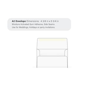 Uma quantidade de 1.000 envelopes para convite A2 - Papel de trama branca nº 24 com uma aba quadrada de 6,5 cm. Este envelope é adequado para um cartão de 11,4 x 14,8 cm. Nosso envelope de convite A2 pode ser utilizado para enviar: convites, cartões de visita ou anúncios. Use este envelope casual para todas as suas necessidades de envio.