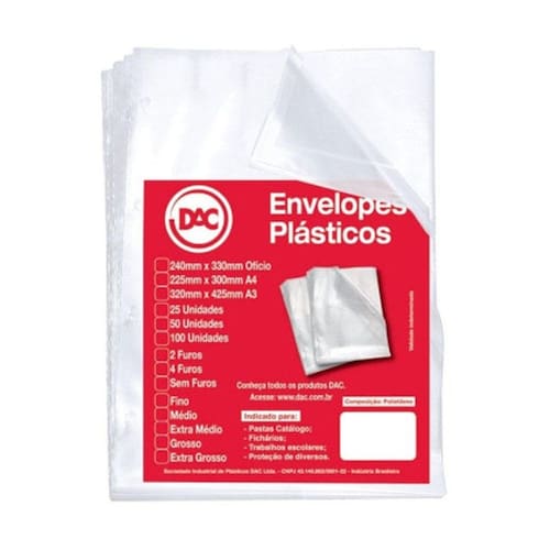 Envelope plástico A3 0.12 4 furos 5324 Pct 50 unid - Dac