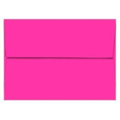 Envelopes de convite A7, envelopes de cartões comemorativos - Fireball Fuchsia (rosa brilhante). Acabamento liso e aba quadrada gomada padrão. É ótimo para acomodar seus cartões comemorativos ou convites de 5 1/4 “x 7 1/4".