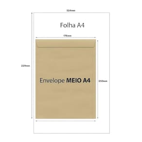 Tamanho: 176mm x 250mm ideal para documentos Meio A4 Quantidade: 50 unidades Cor: Pardo Tipo de Fechamento: Liso, sem janelas Uso: Perfeito para envio de documentos, cartas e outros papéis Gramatura: Alta resistência e durabilidade