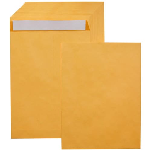 - Envelopes de catálogo (pacote com 100), cada um medindo 9 x 12 polegadas