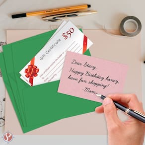 Os envelopes A7 Bright Color (5 1/4 x 7 1/4 polegadas) são ideais para casa e escritório, como cobranças, convites, correspondências comerciais, cartões comemorativos, contratos, casamentos, outras cartas, convites ou anúncios, e são ideais para impressão e envio em geral. Ele foi projetado para conter um papel padrão de 5 x 7 polegadas, cartões e fotos com uma aba (quadrada) reta gomada. Os envelopes são feitos de papel colorido brilhante de 24 libras (60 textos) (90 g/m2), que funciona perfeitamente em uma ampla variedade de equipamentos e usos digitais. Geralmente, papel multiuso utilizado na impressora de escritório. Também é o papel timbrado comercial ou peso fixo mais popular.