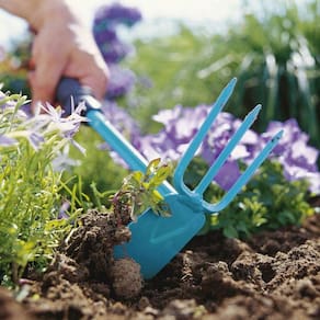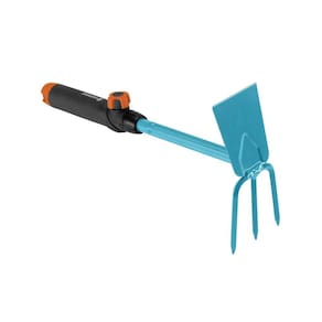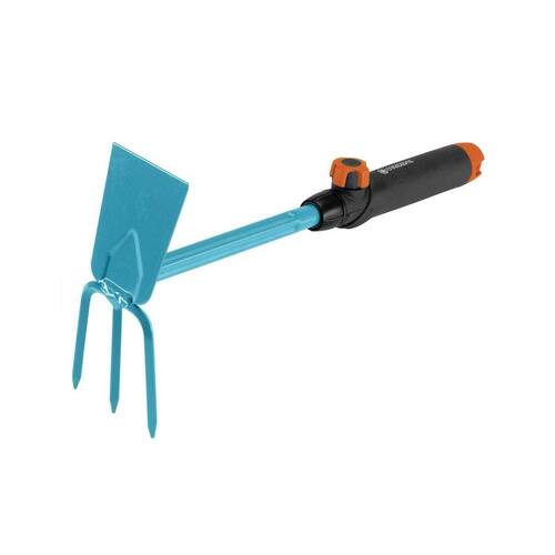 Uma ferramenta com duas funções - enxada de jardim manual, com lâmina de 6,5 cm de comprimento e garfo de três dentes. é ideal para arear e revirar o solo, bem como remover ervas daninhas. O formato do cabo é anatômico e facilita o trabalho. Pode ser removido e trocado por qualquer cabo combisystem.
