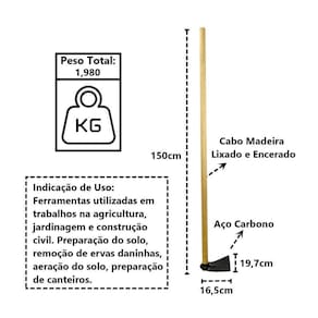 Enxada Sul Estreita Em Aço Cabo Madeira Jardim Horta 150cm