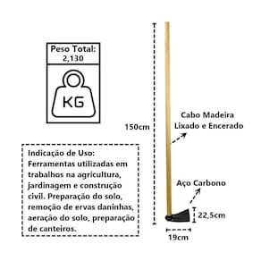 Enxada Sul Larga em Aço Cabo Madeira Jardim Horta 150cm, a enxada possui um cabo de madeira de lei lixada e encerada, proporcionando resistência e conforto durante o uso. Sua lâmina de corte afiada, feita de aço carbono, garante eficiência ao cavar o solo. Com medidas de 150cm de comprimento, 22,5cm de largura e 19cm de altura, essa enxada é uma escolha confiável para agricultores e jardineiros. A pintura por imersão protege e da mais resistência, aumentando a sua durabilidade. Adquira essa ferramenta robusta e eleve a qualidade de suas atividades agrícolas e de jardinagem.