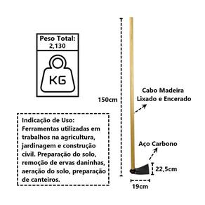 Enxada Sul Larga Em Aço Cabo Madeira Jardim Horta 150cm