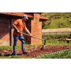 - O enxadão é temperado em todo o corpo da peça, proporcionando maior resistência e menor desgaste durante o uso;