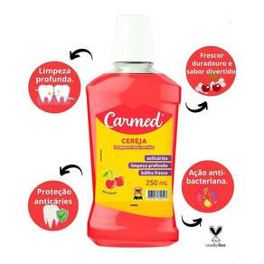 Ideal para adultos e adolescentes que desejam transformar a rotina de cuidados com a boca em um momento mais prazeroso. Benefícios do Enxaguante Bucal Carmed Cereja: