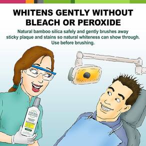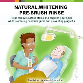 Smile Confidently The Natural Dentist Prebrush Whitening Antigingivitis Rinse is an all-natural rinse that helps remove surface stains and promotes whitened teeth you can be proud of. This rinse contains a minty flavor and comes without commonly used harsh chemicals like peroxide. The cleansing agents in this rinse help in mitigating common gum disease like gingivitis, prevents gum bleeding and buildup of plaque. Promotes a bright smile and freshens breath Contains non-abrasive bamboo silica Helps remove stains Helps remove plaque and gingivitis This rinse should be used before brushing so that the bamboo silica in it can work its magic while brushing. Just For You: Adults and children 12 years and over A Closer Look: The Natural Dentist Prebrush Whitening Antigingivitis Rinse is formulated with active ingredients like peppermint oil and sage oil to help eliminate diseases like gingivitis and plaque. It also contains bamboo powder to help remove stains and promote whiter teeth. You Won't Find: Harsh chemicals like peroxide, alcohol, bleach, artificial sweeteners, dyes and preservatives Get Started: Rinse with 20 ml for 30 seconds before brushing. Brush teeth 2 minutes after rinsing.