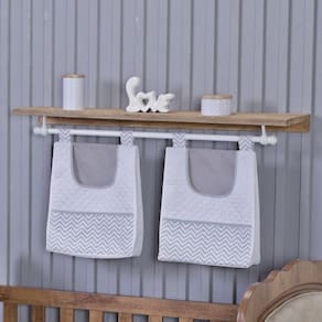 Contém na embalagem: 1 lençol com elástico 1,30m comp x 0,70m larg x 0,15m alt 1 lençol sem elástico 1,35m comp x 1,05m larg 1 fronha 40cm comp x 30cm larg 1 manta dupla face 1,15m comp x 0,95m larg manta de microfibra na cor bege de um lado e tecido de algodão do outro 2 porta fraldas 43cm alt x 32cm larg x 10cm prof para ser pendurado em varão em móveis ou na parede 2 porta fraldas com laço 38cm alt x 32cm larg x 10cm prof para ser pendurado em varão ou no berço 1 cortina 2,70m larg x 1,60 alt 2 partes de 1,35m larg