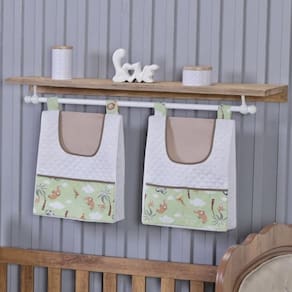 Contém na embalagem: 1 lençol com elástico 1,30m comp x 0,70m larg x 0,15m alt 1 lençol sem elástico 1,35m comp x 1,05m larg 1 fronha 40cm comp x 30cm larg 1 manta dupla face 1,15m comp x 0,95m larg manta de microfibra na cor bege de um lado e tecido de algodão do outro 2 porta fraldas 43cm alt x 32cm larg x 10cm prof para ser pendurado em varão em móveis ou na parede 1 porta treco 64cm larg x 54cm alt para ser pendurado em varão ou no berço 1 cortina 2,70m larg x 1,60 alt 2 partes de 1,35m larg