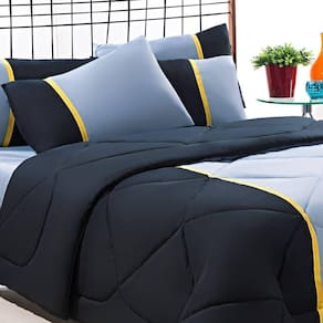 Enxoval Edredom + Jogo De Cama King Aconchego Premium 06 Peças - Preto/ Cinza