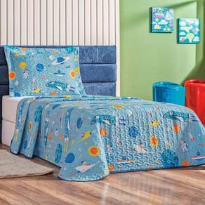 Marca: Bia Enxovais | Estampa: Não se Aplica | Medidas: 01 Colcha Solteiro 2,40m x 1,60m01 Porta Travesseiro 70cm x 50cm01 Lençol de Baixo com elástico 90cm x 1,90m x 30cm01 Fronha 70cm x 50cm | Número de Peças: 04 Peças | Material: Poliéster | Cor Predominante: Astronauta | Cama Indicada: Solteiro