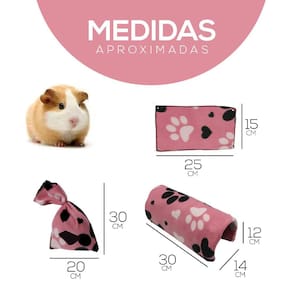KIT TOCA PORTA FENO E REDE PARA PET PORQUINHO DA ÍNDIA ESTAMPA FÊMEAOs porquinhos da Índia são animais que costumam ficar em gaiolas, uma vez que, soltos, sem uma certa vigilância, pode ser perigoso.Por isso é de extrema importância que se pense no melhor ambiente possível para eles, em um espaço suficiente e bem aconchegante.Para deixar seu pet bem confortável e feliz, temos esse KIT COMPLETO de acessórios composto por toca, porta-feno e rede.DIMENSÕES APROXIMADAS (CxLxA):Toca: 30x14x12cm (arco)Porta Feno: 30x20cmRede: 25x15cmATENÇÃO:* Estampas são aleatórias. Enviaremos de acordo com disponibilidade de estoque.CARACTERÍSTICAS: - Material: Tecido soft - Rede e porta feno possuem Ilhós nas pontasITENS INCLUSOS: - 1 x Toca; - 1 x Porta-Feno; - 1 x Rede.OBSERVAÇÕES: - Garantia de 3 meses contra defeitos de fabricação - Imagens ilustrativas - Não nos responsabilizamos pelo uso inadequado do produtoNão deixe de conhecer nossos outros produtos! Marca: IGUANNA