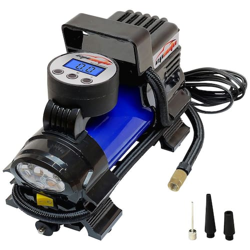 Conveniência conecte diretamente na tomada do isqueiro do seu veículo. 12 VCC, 10 a eres, 120 a 180W. Equipado com plugue de tomada de isqueiro de 12 V CC, NÃO plug de 110 V CA. Vários usos Encha pneus em carros, bicicletas, sedan e SUV de médio porte. Tamanho do motor abaixo de 3,5 litros O conector de válvula universal para válvula Schrader está pronto para uso. Adaptadores adicionais incluem valor de agulhas para basquete, bolas, adaptadores de cone curto , cone longo para caiaque inflável, acessórios de piscina, etc Capacidade NÃO suporta pneus de caminhão, por exemplo pneus de caminhão leve LT, pneus de caminhão de serviço pesado ou qualquer pneu de caminhão. Fácil de ler 4 unidades de exibição PSI, KPA, BAR, KG , CM LED LANTERNA brilhante. Impedir o excesso de inflação Desligue automaticamente ao atingir a pressão do pneu desejada. A proteção contra superaquecimento desliga automaticamente durante a sobrecarga. Patente USPTO NO D875.788 Marca: Não Informado