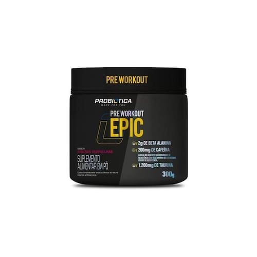 EPIC, o seu melhor Pré-TreinoEpic é o Pré-treino da Probiótica que conta com um sinergismo de ingredientes, que tem o intuito de promover melhora de performance esportiva.Conta em sua composição com a presença dos ativos: Beta Alanina, Taurina e Cafeína, em quantidades satisfatórias para promover melhora da disposição, desempenho físico e redução da fadiga.