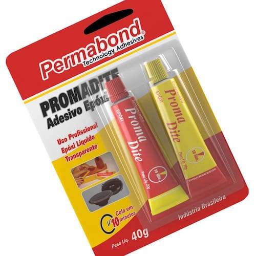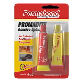 DESCRIÇÃO O Epóxi Cola 10 Minutos Profissional E Domestico 40g Permabond cola pequenas superfícies de materiais porosos, lisos ou irregulares como azulejos, madeira, vidro, concreto, borracha vulcanizada, fibras naturais, pedras, a maioria dos plásticos rígidos, metais e outros materiais. Epóxi Líquido. DETALHES BI COMPONENTE TRANSPARENTE COLA EM 10 MINUTOS ESPECIFICAÇÕES Contém 1 endurecedor de 20g e 1 resina de 20g. CARACTERÍSTICAS Secagem ocorre em 10 minutos. Obtém-se a cura final em aproximadamente 8 horas.AS IMAGENS SÃO MERAMENTE ILUSTRATIVAS