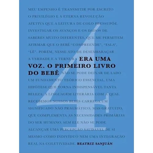 O quarto Caderno Hexágono traz reflexões e experiências da autora em torno da importância da voz literária nos primeiros anos de vida. O ensaio é uma defesa da leitura compartilhada com o bebê e uma descrição dos processos afetivos e perceptivos que experimenta na transmissão da linguagem literária no que se conhece como "literatura de colo". A voz literária fará seu percurso num contexto de gratuidade, e não de benefício. Que papel desempenha o folclore? Quem é o destinatário dos antigos contos de tradição oral? E quanto aos livros, o que um livro de bebê carrega? Que fontes literárias usa e ativa? Era uma voz, o primeiro livro do bebê é um convite para seguir essas reflexões como seguimos a "trilha de migalhas de pão".
