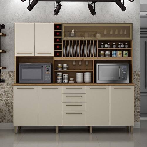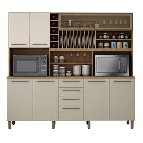Praticidade e facilidade são os principais pontos da Cozinha Compacta Maranella Feito em MDP/MDF nas cores marrom Cinamomo com Off White. Possui 13 Portas, 4 Gaveta, 5 prateleiras e 4 Nichos. Complementando sua cozinha e trazendo versatilidade para organizar sua cozinha com encanto!