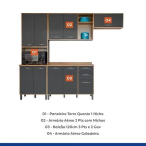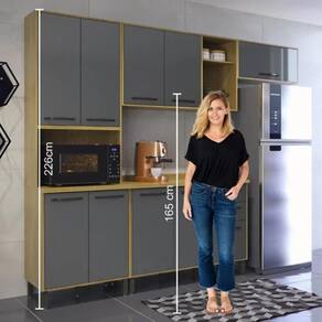A cozinha modulada Áustria é completa, ela trará conforto e facilidade para você, ao mesmo tempo que deixará o ambiente muito mais aconchegante e prático. Feita em MDP nas cores Cinamomo com Grafite. Possui 4 peças, Armário Geladeiras, Armário aéreo, Paneleiro e Balcão. Assim o conjunto oferece tudo que sua cozinha precisa, em menos espaço!