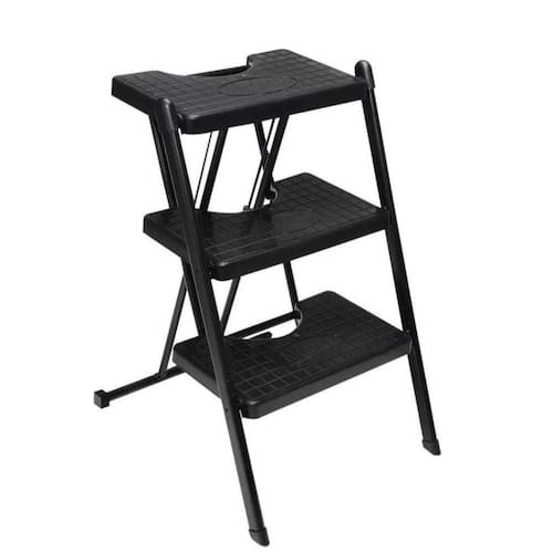 Escada Alcance 3 Degraus Dobrável Preta Anodilar - Especificações TécnicasEstrutura em aço-carbono com banho em cromo;
