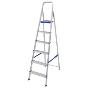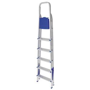 Escada Alumínio Mor 6 Degraus Com PlataformaPraticidade e segurança para você alcançar lugares altos é com a Escada de Alumínio Mor Com 6 Degraus E Plataforma. Seu design moderno, compacto e muito elegante, vai facilitar sua rotina de trabalhos domésticos proporcionando conforto e proteção durante o uso. Com 6 degraus, fita de segurança, corpo em alumínio super resistente e duráel, ela suporta até 120 kg. Tudo isso para deixar as tarefas do seu dia a dia ainda mais fáceis e simples.Características:Marca: MorCor: Prata e AzulMaterial: Alumínio e PolipropilenoPeso suportado: 120 kg Degraus: 6Dimensões do produto: 178cm (A) x 46cm (L) x 88cm (C)Dimensões da embalagem: 12cm (A) x 49cm (L) x 187cm (C)Peso do produto: 4,099 kgObservação: Objetos decorativos que aparecem nas imagens não acompanham o produto. Imagens meramente ilustrativas.