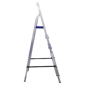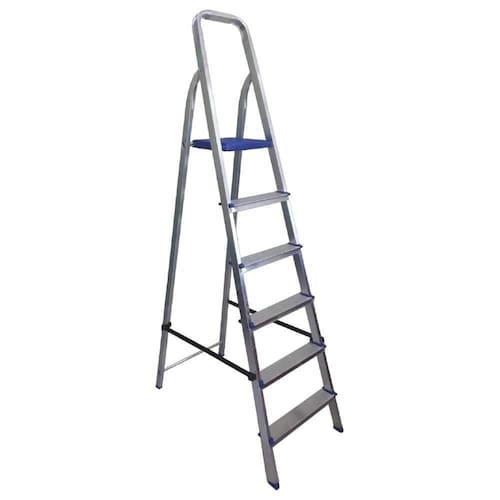 Informações Adicionais do Produto: Escada em alumínio com 6 Degraus, leve e resistente, apropriada para o uso doméstico. Patamar em polipropileno, pés antideslizantes, degrau com 75mm, garantindo segurança para a utilização.