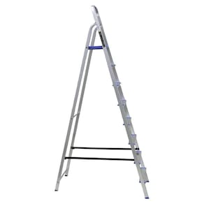 Informações Adicionais do Produto: Escada em alumínio com 8 Degraus, leve e resistente, apropriada para o uso doméstico. Patamar em polipropileno, pés antideslizantes, degrau com 75mm, garantindo segurança para a utilização.