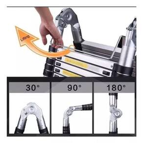 Escada Alumínio Telescópica V Multifuncional 5m 16 Degraus Escada Alumínio Forte Profissional Telescópica em V Multifuncional 5 Metros 16 Degraus para Pintura, Limpeza de Janelas.
