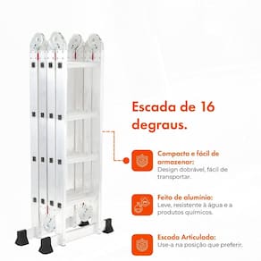 A Escada Articulada de Alumínio com 16 degraus proporciona um alcance de até 4,24 metros, tornando-a a escolha ideal para alcançar locais elevados com facilidade e segurança.