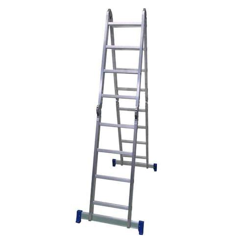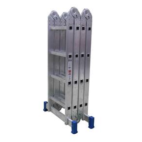Informações Adicionais: Escada Multifunção Articulada 4 x 4 (4 sessões de 04 degraus), 16 degraus em alumínio, leve e fácil de transportar, pode ser utilizada estendida, como andaime, na posição de pintor e em outras 10 posições. Articulações precisas com travamento automático, barras estabilizadoras para melhor fixação e degraus antiderrapantes com maior área de contato.