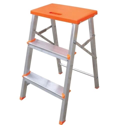 Informações Adicionais: Pode ser guardado facilmente e transportado pela sua alça. Possui patamar laranja de polipropileno altamente resistente, travas de segurança, sapatas antiderrapantes e seus degraus largos proporcionam conforto ao usuário. Banco escada em alumínio com 3 Degraus, leve, prático e versátil, apropriado para o uso doméstico Peso Máximo Suportado: 120 Kg