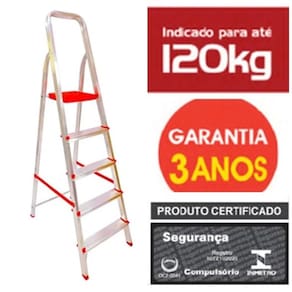 Possui patamar de polipropileno altamente resistente e com trava, sapatas antiderrapantes e seus degraus largos proporcionam conforto ao usuário.