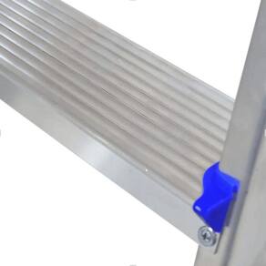 Escada de alumínio de liga especial, super-resistente com degraus e sapatas antiderrapantes. Trava de segurança em alumínio com articulação lateral e sistema de sustentação traseira em X. A Escada doméstica é super versátil, leve e fácil de transportar. Não enferruja, possui os pés de borracha antiderrapantes, o que proporciona muito mais estabilidade em seu uso. Ideal para moradores de apartamentos e casas térreas que necessitam de auxílio para executar algumas tarefas diárias. Quantidade de degraus: 3 Medida aberta: 112cm Medida fechada: 121cm Medida patamar: 66cm Material: Alumínio Plataforma: Polipropileno Suporta: até 120Kg Dimensões C x L x A : 400 x 100 x 1200mm Peso: 2,25kg Modelo: 3 Degraus Marca: Real SKU: 63695